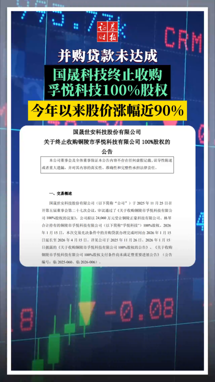 并购贷款未达成,国晟科技终止收购孚悦科技100%股权,今年以来股价涨幅近90%