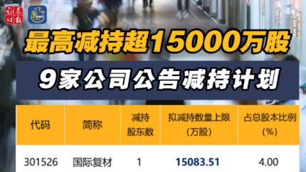 最高减持超15000万股 4月14日9家公司公告减持计划