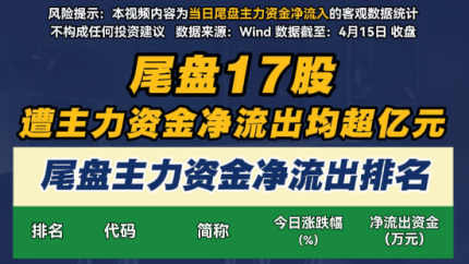 尾盘17股遭主力资金净流出均超亿元