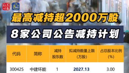 最高减持超2000万股 4月16日8家公司公告减持计划