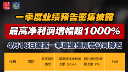 最高净利润增幅超1000% 4月16日披露一季度业绩预告公司排名