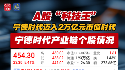A股“科技王”迈入2万亿元市值时代 宁德时代产业链个股情况