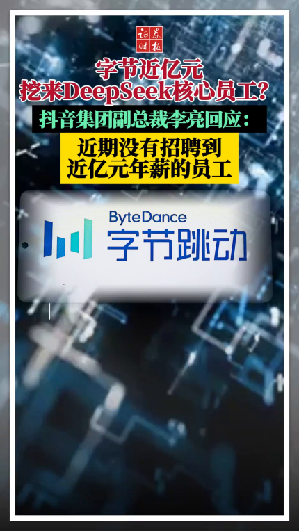 字节近亿元挖来DeepSeek核心员工?抖音集团副总裁李亮回应:近期没有招聘到近亿元年薪的员工
