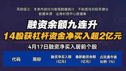 融资余额九连升!14股获杠杆资金净买入超2亿元