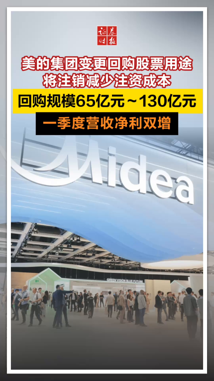 美的集团变更回购股票用途,将注销减少注资成本,回购规模65亿元~130亿元,一季度营收净利双增