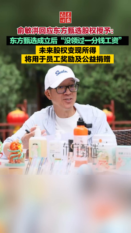 俞敏洪回应东方甄选股权授予:东方甄选成立后“没领过一分钱工资” 未来股权变现所得将用于员工奖励及公益捐赠