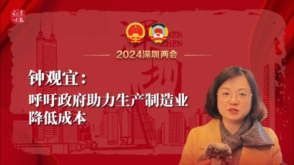 深圳市人大代表、深圳市信利康供应链管理有限公司执行总裁钟观宜在2024深圳两会期间表示,呼吁政府助力生产制造业降低成本。