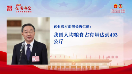 两会视频 | 农业农村部部长唐仁健:我国人均粮食占有量达到493公斤