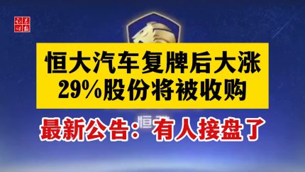 恒大汽车复牌后大涨 29%股份将被收购