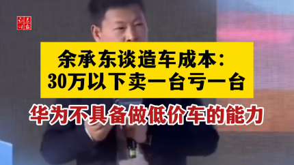 余承东谈造车成本:30万以下卖一台亏一台