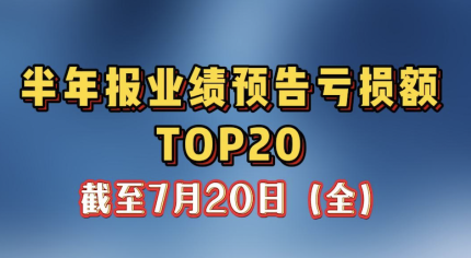 截至7月20日:半年报业绩预告亏损额居前股名单