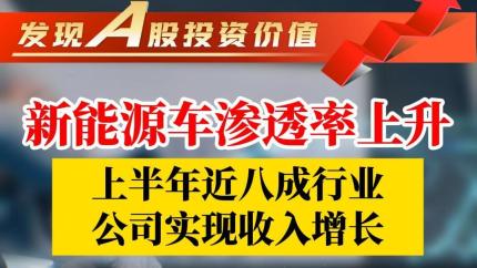 【发现A股投资价值】新能源车渗透率上升,上半年近八成行业公司实现收入增长