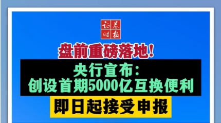 盘前重磅落地!央行宣布:创设首期5000亿互换便利,即日起接受申报!通过这项工具所获得的资金只能用于投资股票市场。