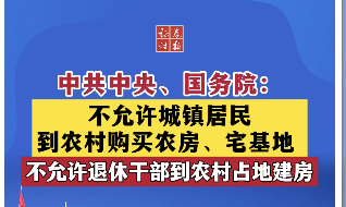 中共中央、国务院:不允许城镇居民到农村购买农房、宅基地 不允许退休干部到农村占地建房