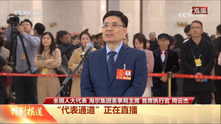 【2025全国两会】全国人大代表、海尔首席执行官周云杰:全球每10件家电专利中,有7件来自中国