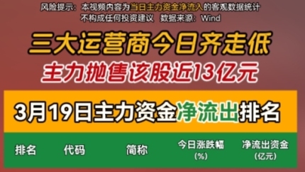 三大运营商今日齐走低 主力抛售该股近13亿元