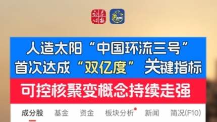 人造太阳“中国环流三号”首次达成“双亿度” 关键指标 可控核聚变概念持续走强
