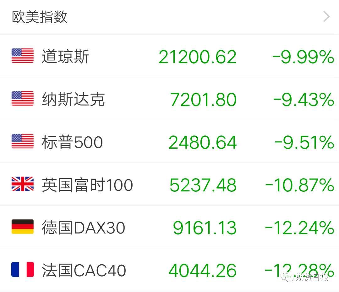 3月12日,全球股市集体暴跌、哀鸿遍野。美国三大股指开盘均跌超7%,集体触发熔断,道琼斯指数收跌9.99%;巴西股市下跌15%,一天内触发第二档熔断机制;韩国股市大跌超8%,触发熔断;欧洲STOXX 600指数、欧洲STOXX50指数、德国DAX指数、法国CAC40指数均收跌超11%,英国富时100指数跌近11%;多伦多股市跌幅12.3%,创下1940年以来最大跌幅......