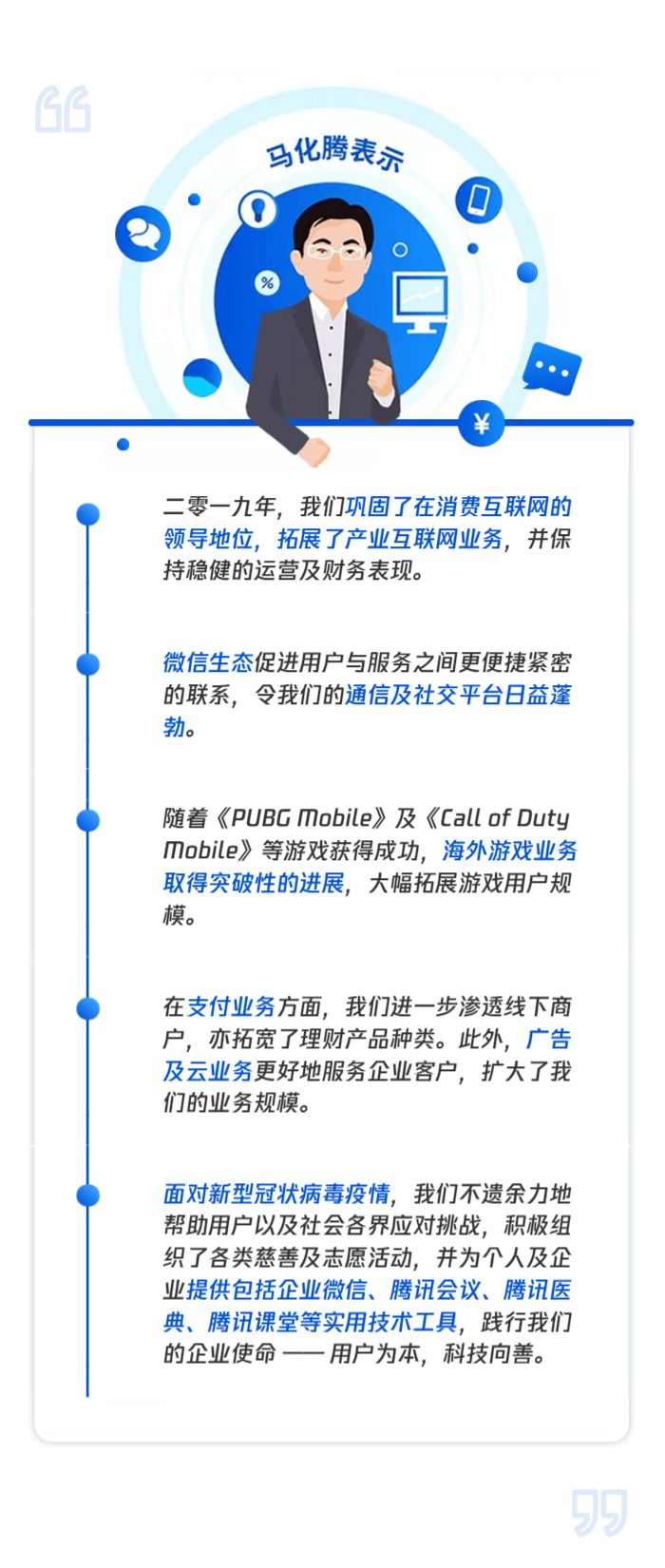 3月18日,腾讯发布2019年第四季度和全年业绩报告。财报显示,2019年第四季度,腾讯营收1057.67亿,同比增长25%;净利润254.84亿,同比增长29%。这是腾讯季度营收首次突破1000亿关口。