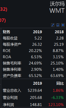 根据Wind数据统计,截至2019年底,共有1830家机构持有沃尔玛6.69亿股,占总股本的23.6%,持仓市值高达796亿美元。在持股机构中有671家机构在2019年增持了沃尔玛,有266家机构为2019年新进。