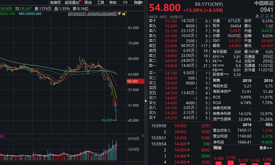 恒生指数成份股中,中国移动大涨13.58%,全天成交6752万股,成交量创最近两年多新高,成交额达到36.03亿港元。