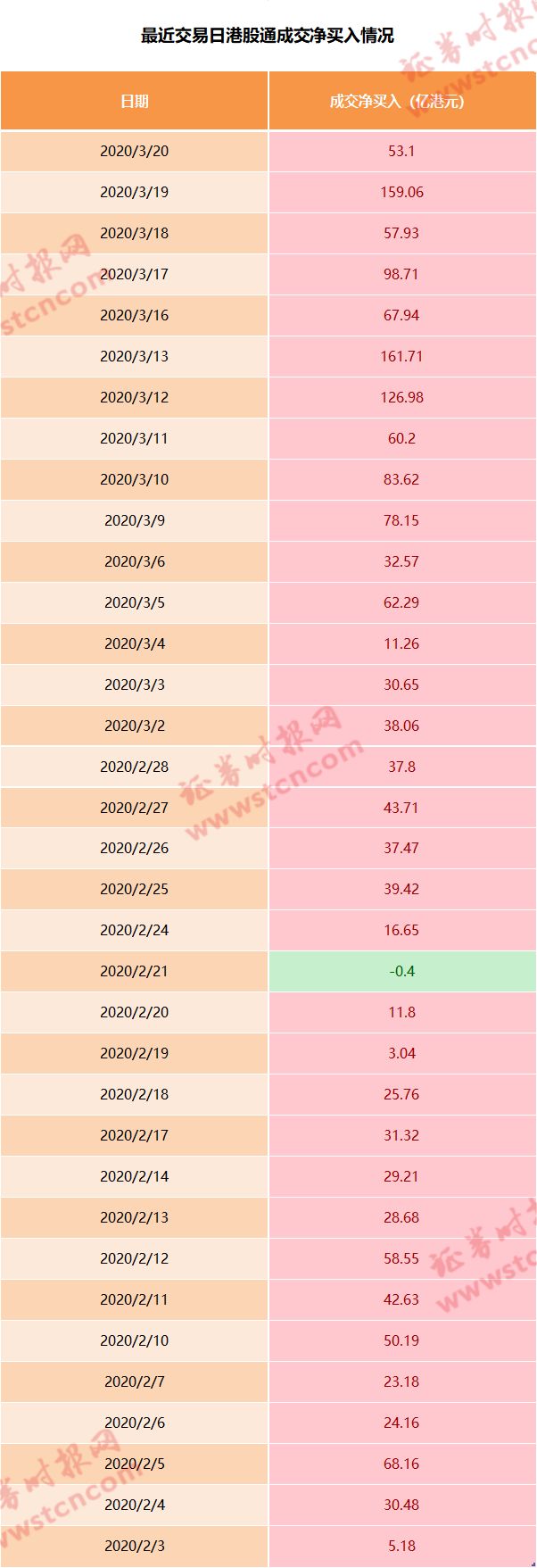 数据显示,周五港股通再度净买入53.10亿港元,连同此前交易日,南下港股通资金已连续20个交易日呈现净买入。