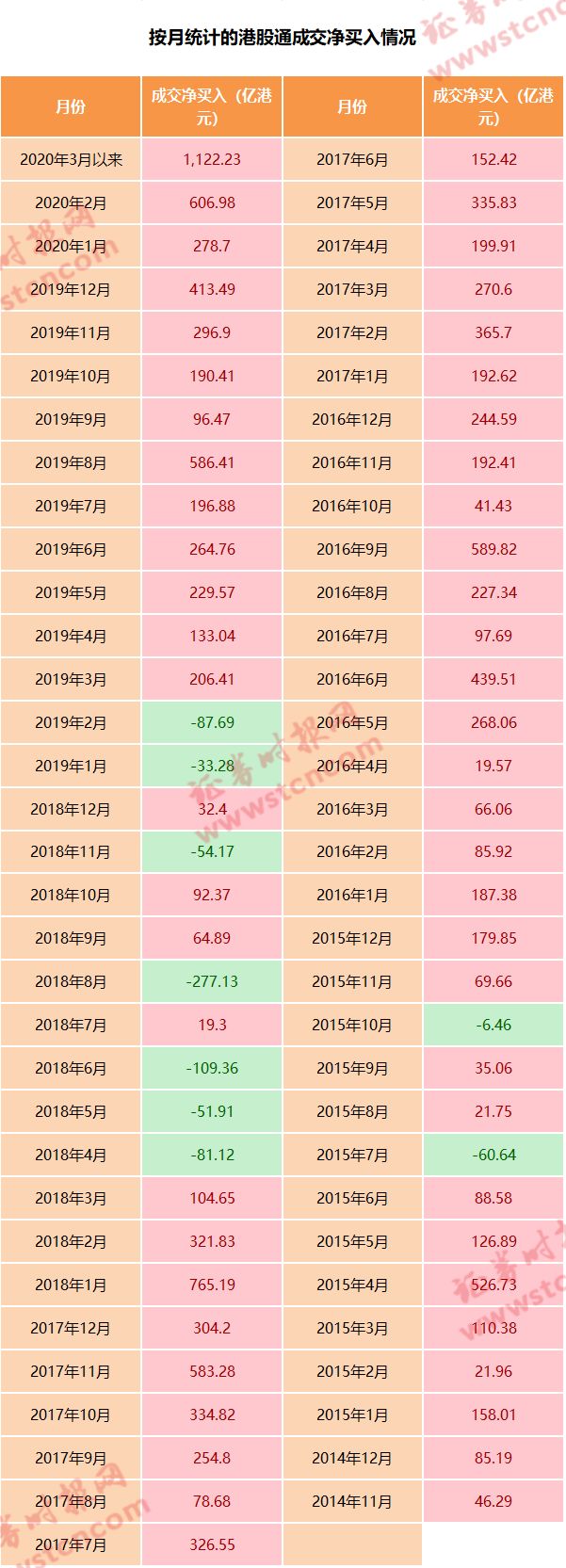 实际上,今年3月以来,港股通资金累计净买入1122亿元,而在此前,港股通资金月度净买入额最高的是2018年1月的765.19亿港元。这意味着,如果未来几个交易日港股通资金不大幅净卖出,今年3月港股通净买入金额将创下历史新高。