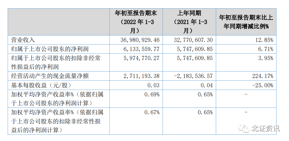 Wind的统计显示,截至4月22日晚,已有8家公司晒出今年一季报,均录得盈利。其中,永顺生物、流金岁月、泰祥股份、齐鲁华信一季度净利润超过1000万元,凯德石英、流金岁月和观典防务一季度净利润同比正增长。