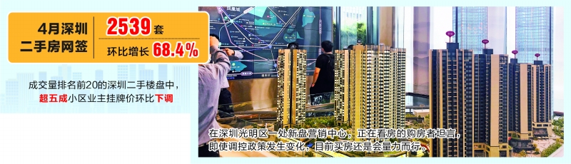 此外,乐有家研究中心数据显示,4月成交量排名前20的深圳二手楼盘中,有超五成的小区业主挂牌价环比出现了下调。记者在罗湖、福田和龙岗坂田等多个片区实探发现,一些中介经理反映近日的确有些二手房业主小幅度“反价”,但这些房源之前已经很长时间没有成交,多数业主也都是抱着“试一试”的态度。在采访中,面对业主“反价”的现象,多位购房者也表示,相比较2020年的情况,自己变得比较“冷静”,坦言即使调控政策发生变化,目前买房还是要量力而行。