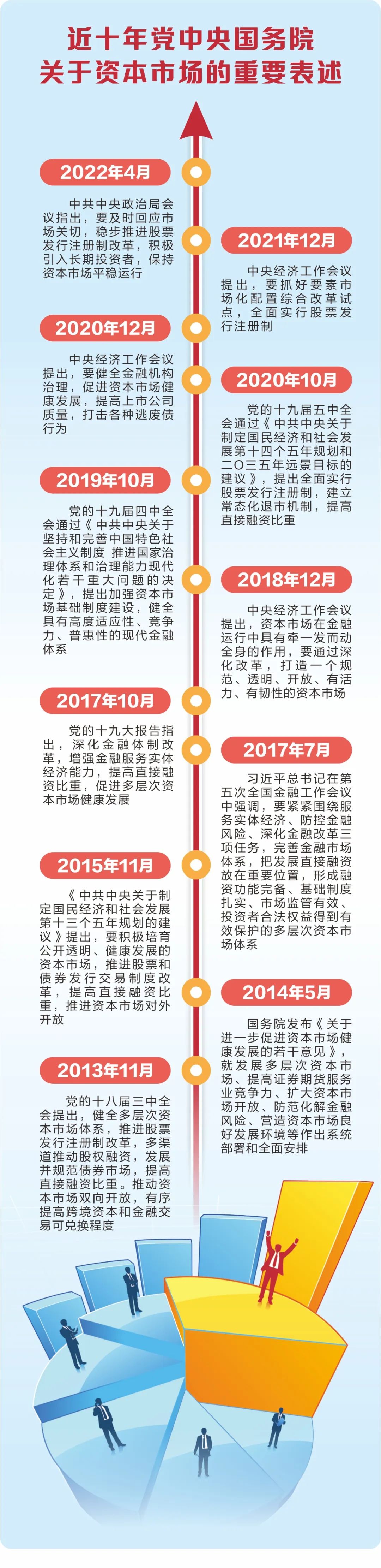 过去这十年,正是中国资本市场激流勇进、水深鱼跃的黄金时期。合抱之木,生于毫末,成绩的背后是资本市场改革的深入推进。近年来,证监会进一步厘清科创板、创业板市场服务定位,合并深市主板和中小板,完善差异化制度安排,推进股票发行注册制改革平稳落地,以注册制改革为牵引,统筹推进资本市场基础制度建设、法治体系完善、监管转型与能力提升等重点改革任务落地见效,进一步增强基础制度的适应性包容性,持续优化市场结构和生态,更好发挥资本形成和资源配置功能,促进股权融资加快发展。