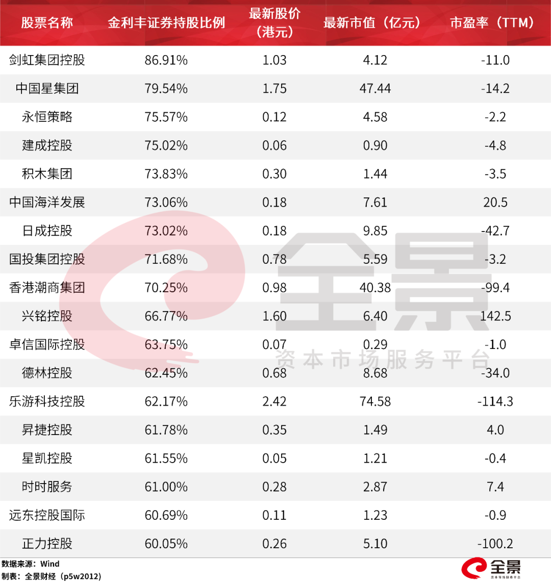 据富途证券的数据显示,截止目前,作为持股券商金利丰证券,其对32家香港上市公司的持股比例超过50%,其中18家的持股比例超过了60%。