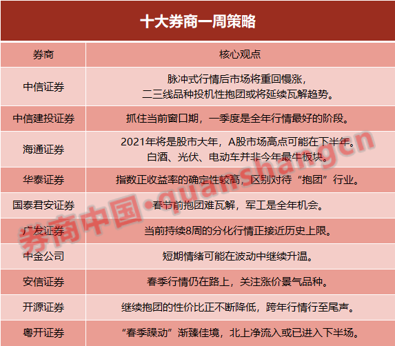 12月以来流动性的边际改善已经提前开启了春季行情,目前全球疫情出现一些不确定性,流动性宽松环境有望持续,美国民主党掌控参议院后,全球通胀预期提升,A股春季行情尚未结束,部分涨价品种可能出现一波新的机会。