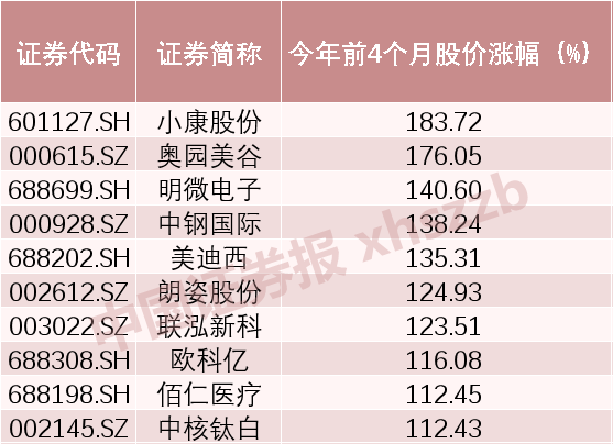 今年前4个月被券商调研个股涨幅前十