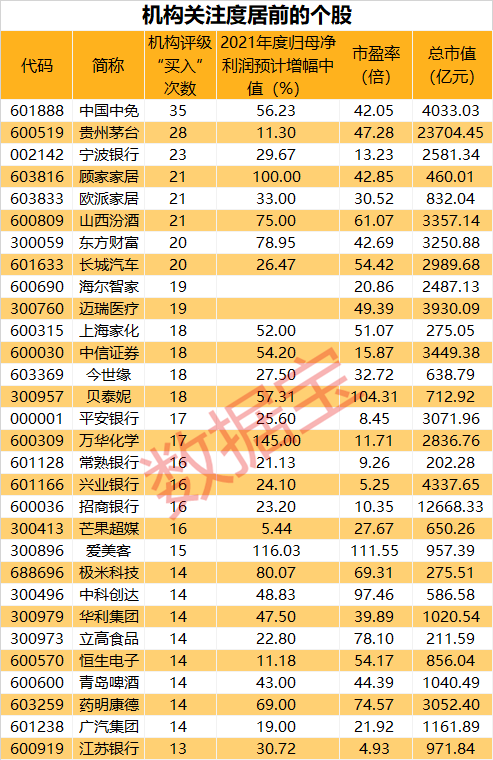 业绩通常是机构关注的重点因素之一。数据宝统计,47只机构关注股2021年度业绩预增;以净利润预计增幅中值来看,半数预计增幅在50%以上,其中11股预计净利润有望翻倍,包括晶晨股份、容百科技、华鲁恒升。