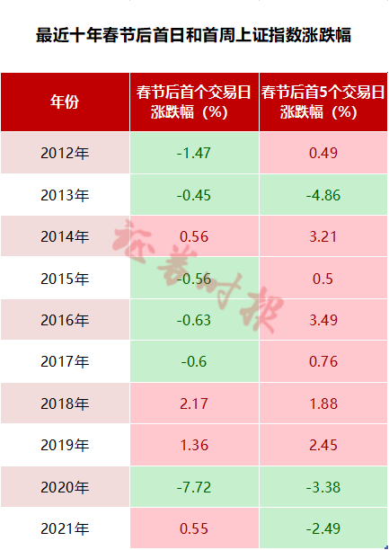 数据表明,最近十年春节后A股首日和首周表现均存在较大随机性,并无非常明显的规律。