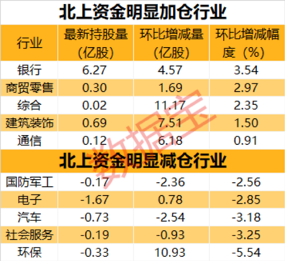 银行板块获北上资金逆势加仓,一周持股量环比增长4.16%,结束了连续五周的持股量下降。