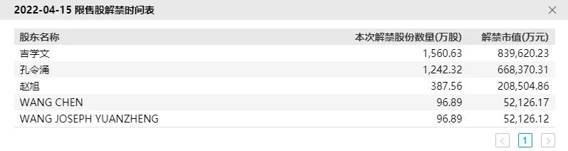 本次解禁股份3384万股,占解禁前股份比超过60%。