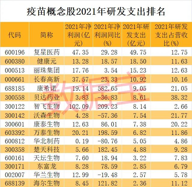 疫苗概念股研发强度是A股整体的3.86倍