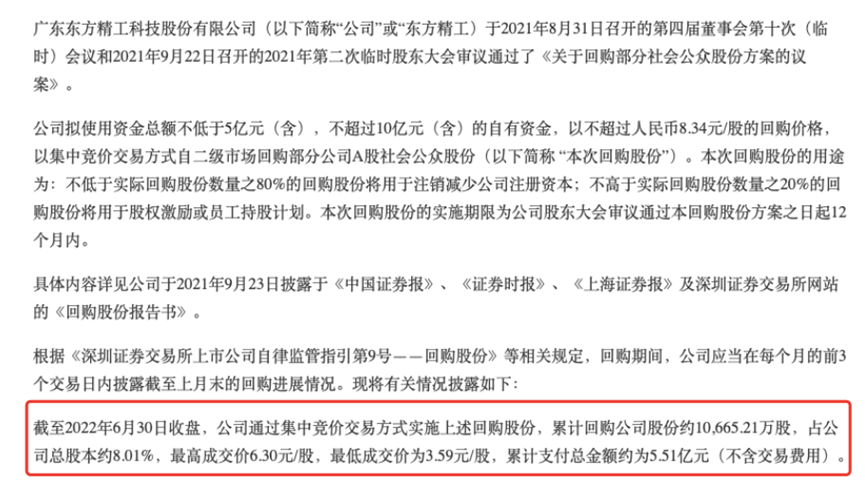 截至6月30日收盘,公司已累计回购股份约1.07亿股,占公司总股本约8.01%,累计支付总金额约为5.51亿元。