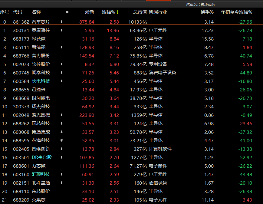 汽车芯片概念板块今日也强势上涨,紫光国微、韦尔股份、闻泰科技等概念个股均表现不错。