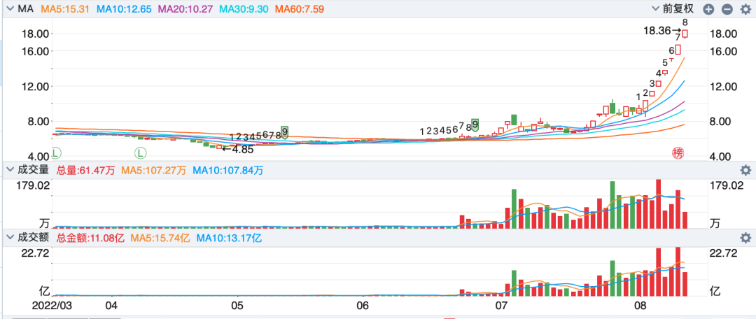 7月21日,大港股份的股价为7.2元,市值为41.7亿元,最新市值107亿元,半个多月时间市值增加了60多亿元。有股民表示,因为卖早了,现在每天看着涨停心如刀割。