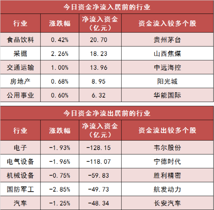 1、两市主力资金净流出230亿元