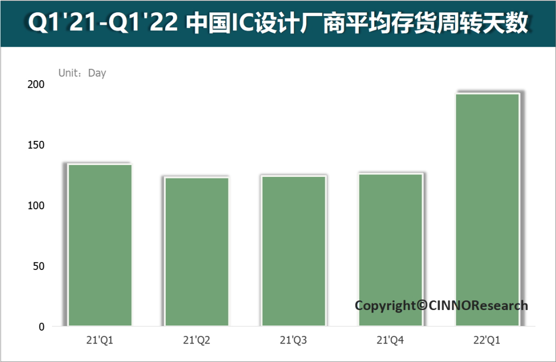 根据CINNO Research数据显示,消费电子市场仍陷低迷,在库存方面,2022第一季度,国内消费电子芯片库存周转天数增至201天,第二季度为传统去库存季度,但是预计2022年第二季度市场去库存情况将低于往期。