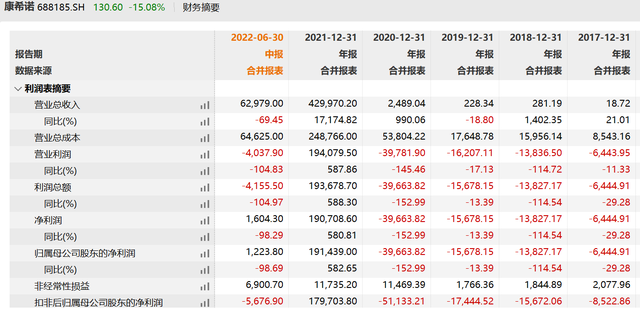 康希诺中报业绩由盈转亏是股价放量暴跌的主要诱因。8月28日晚间,公司发布2022年半年报,营业收入与归母净利润同比分别下滑69.45%、98.69%,扣非后归母净利润再度由盈转亏。