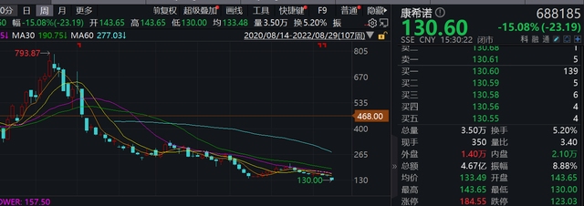8月29日,科创板创新疫苗股康希诺(688185.SH、06185.HK)A、H股分别暴跌15.08%、13.5%,双双刷新历史低点,公司A股市值较高点累计蒸发近84%。