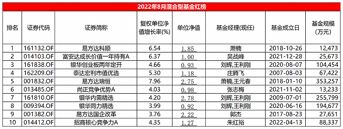 表:8月份红榜混合型基金明细来源:Wind界面新闻研究部
