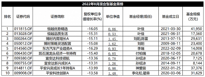 表:8月份黑榜混合型基金明细来源:Wind界面新闻研究部