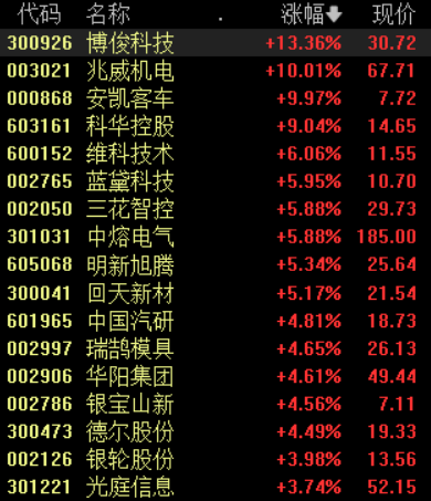 9月7日,华为汽车板块盘中持续上涨,截至发稿,兆威机电、安凯客车涨停,博俊科技涨逾13%,其余多股纷纷跟涨。