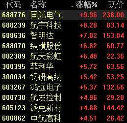 周五盘中,军工股快速拉升,截至发稿,国光电气涨停,航宇科技涨超8%,智明达涨超7%,纵横股份、航天彩虹、菲利华、钢研高纳等多股跟涨。