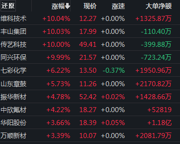 钠离子电池板块涨幅居前,传艺科技再度涨停,维科技术、丰山集团、海天股份、同兴环保涨停,七彩化学涨超6%,万顺新材、振华新材、华阳股份、山东章鼓等跟涨。